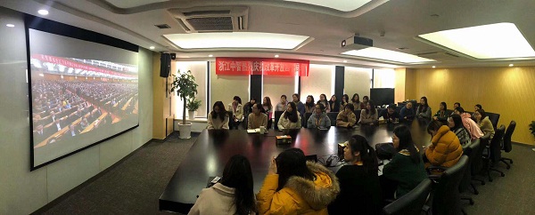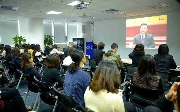 中智公司組織總部職能部門全體干部員工、女工委員、女工代表、在京分支機構(gòu)班子成員及部門負責(zé)人、職工代表等百余人在公司總部多功能廳集中收看了實況直播。同時,中智公司在全國各地的所有分支機構(gòu)積極落實組織全體員工認(rèn)真收看大會直播。全體黨員干部員工身著正裝、佩戴黨徽,懷著激動和振奮的心情共同見證和回顧了改革開放40周年的偉大進程。慶祝大會國歌響起,奏響了改革開放40周年的輝煌序章,40年眾志成城,40年砥礪奮進,40年春風(fēng)化雨,中國人民用雙手書寫了國家和民族發(fā)展的壯麗史詩。